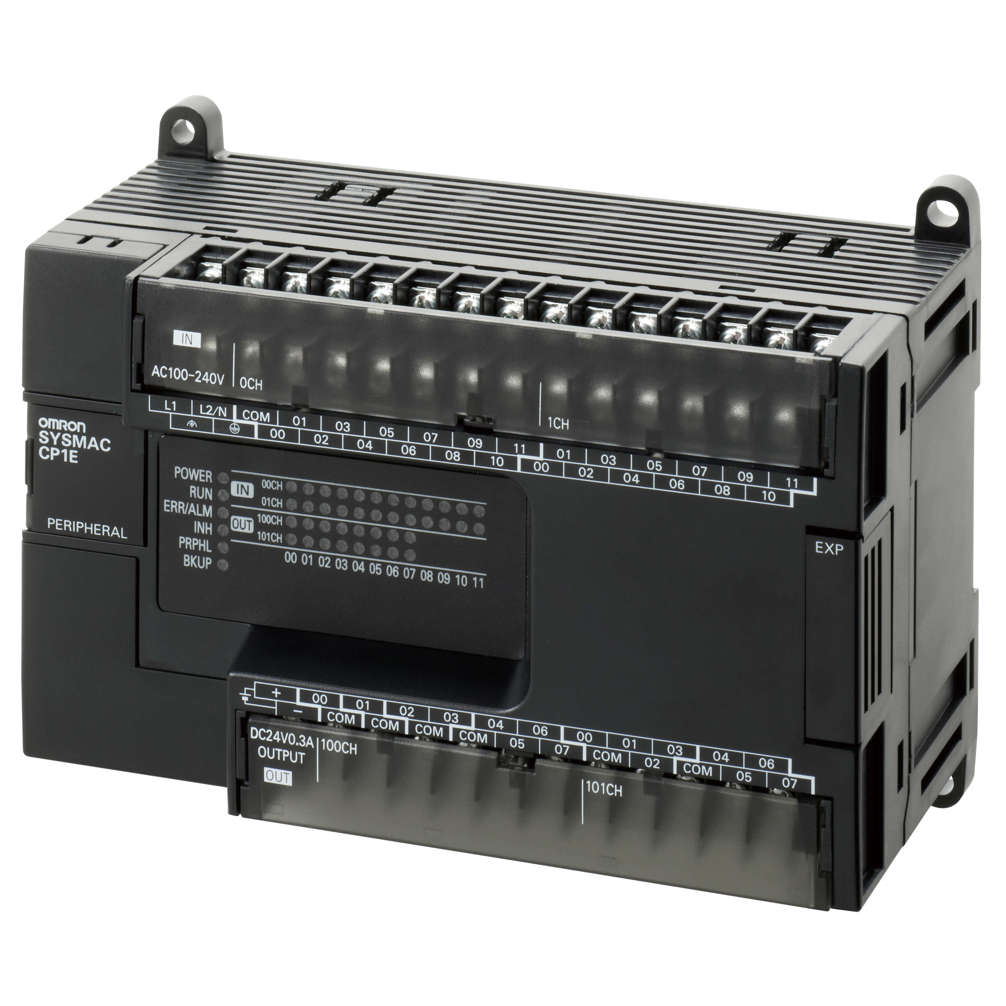 CP1E-E40SDR-Ahttps://assets.omron.eu/images/products/CP1E-E40S_R.jpgPLC, 100-240 VAC supply, 24 x 24 VDC inputs, 16 x relay outputs 2 A, 2K steps program + 2K words data memory