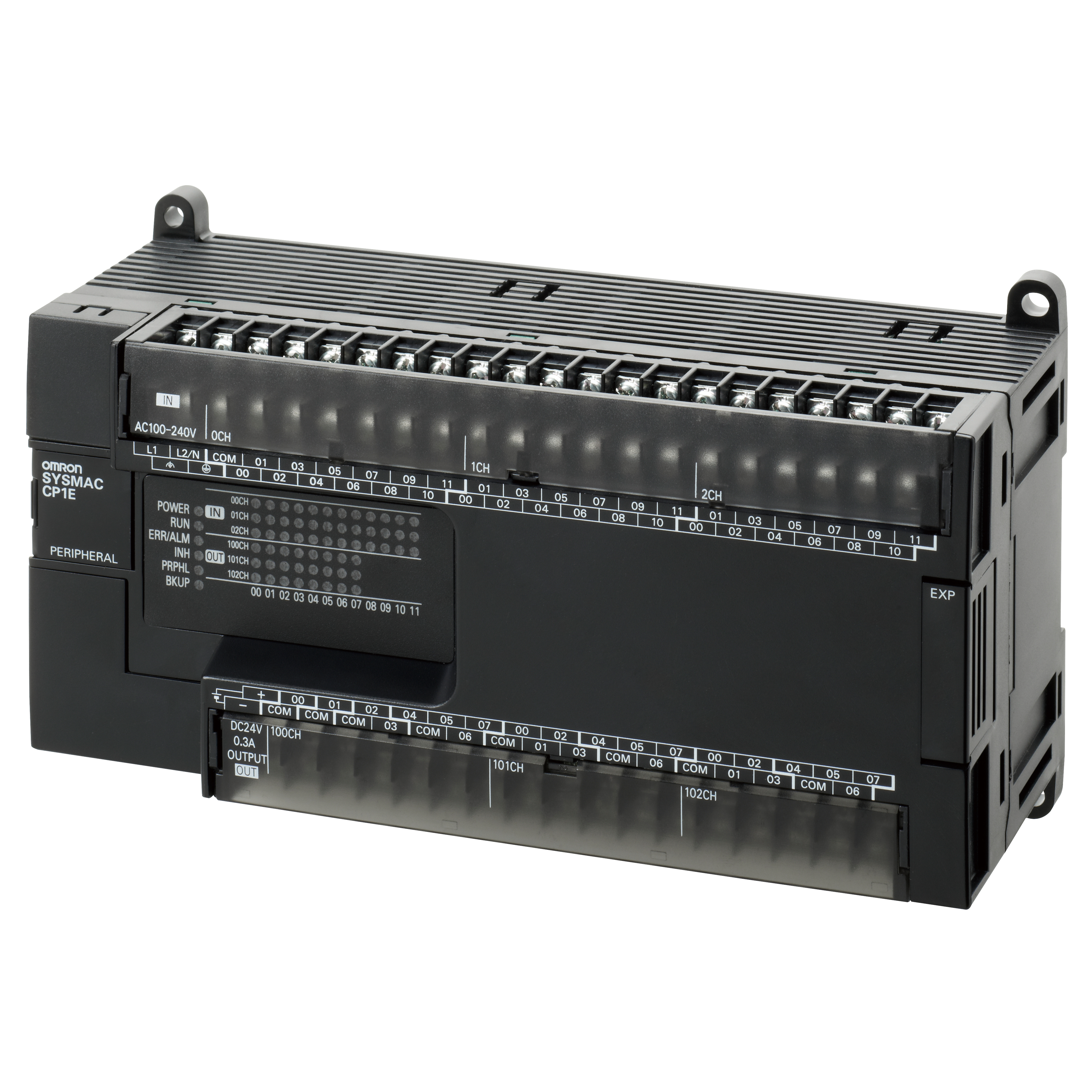 CP1E-E60SDR-Ahttps://assets.omron.eu/images/products/CP1E-E60S_R.jpgPLC, 100-240 VAC supply, 36 x 24 VDC inputs, 24 x relay outputs 2 A, 2K steps program + 2K words data memory