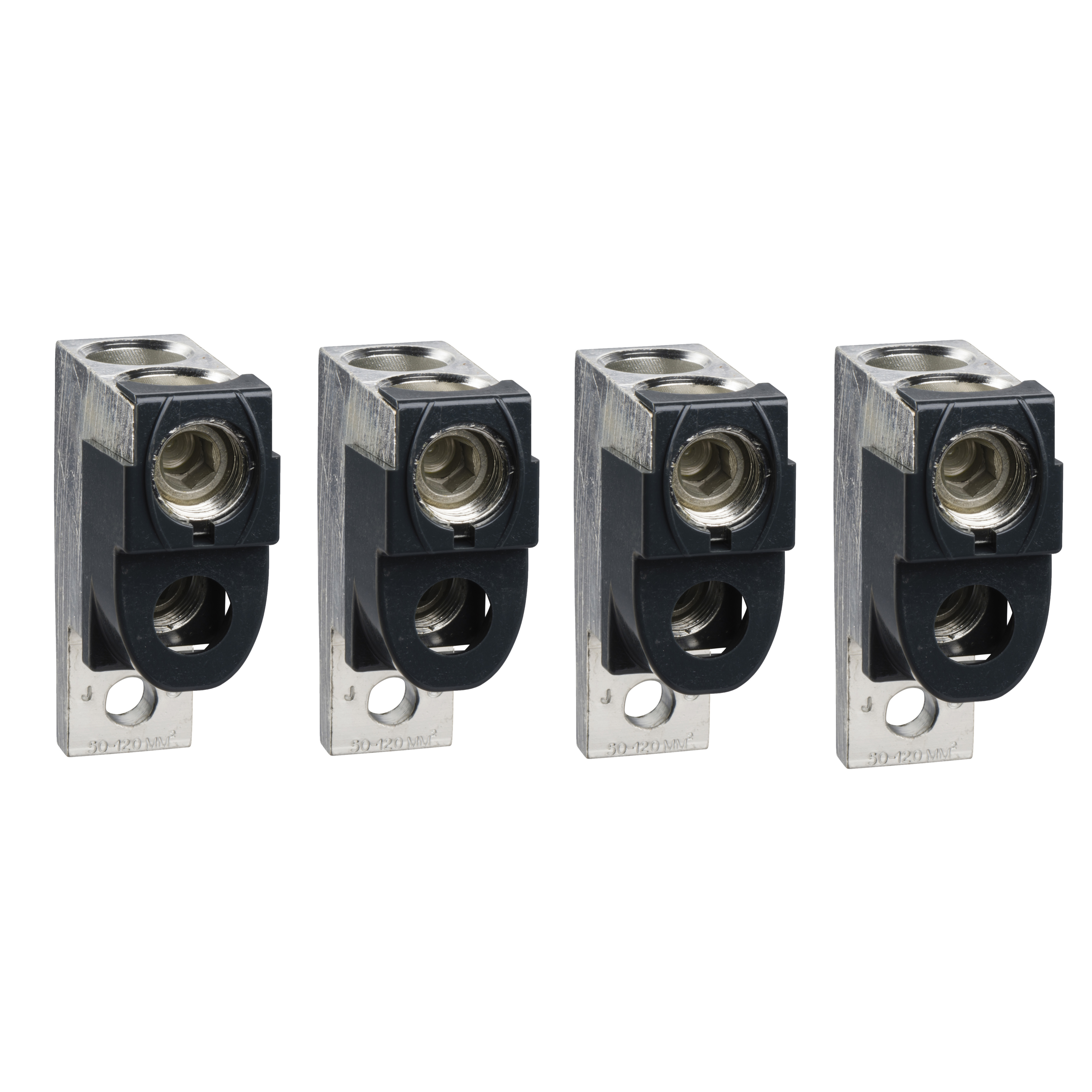 Set of 4 connectors - 2 cables - 35..300 mm². Label: Interpact INS/INV switches - range of product: INS320...630,INSJ400,INV320...630,NSX400...630,NSX400...630 DC,Easypact CVS400...630 - range: Compact - device short name: connectors - product or component type: terminal - accessory / separate part category: connection accessory - range compatibility: , , , , , - quantity per set: set of 4 - Range Presentation:
