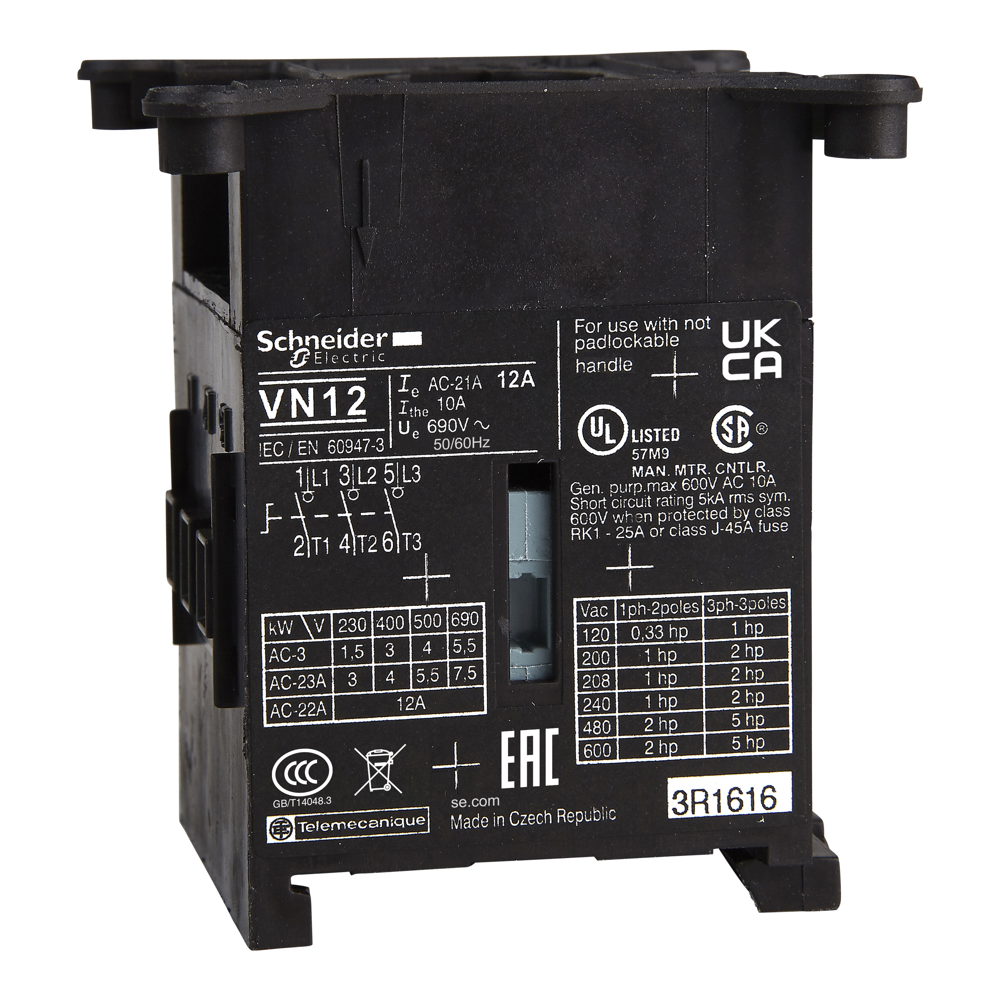 VN20https://download.schneider-electric.com/files?p_Doc_Ref=ODAPB107203&p_File_Type=rendition_4000_pngTeSys Mini-VARIO - Switch body for switch-disconnector - 3 poles - 20 A.Label:TeSys mini-vario, vario-range:TeSys-product name:TeSys Mini-VARIO-device short name:VN-product or component type:switch body-performance level:standard-poles description:3P-contacts type and composition:3 NO-network type:AC,DC-network frequency:50/60 Hz-Range Presentation:TeSys wall-mounted DOL starters LG, LJ