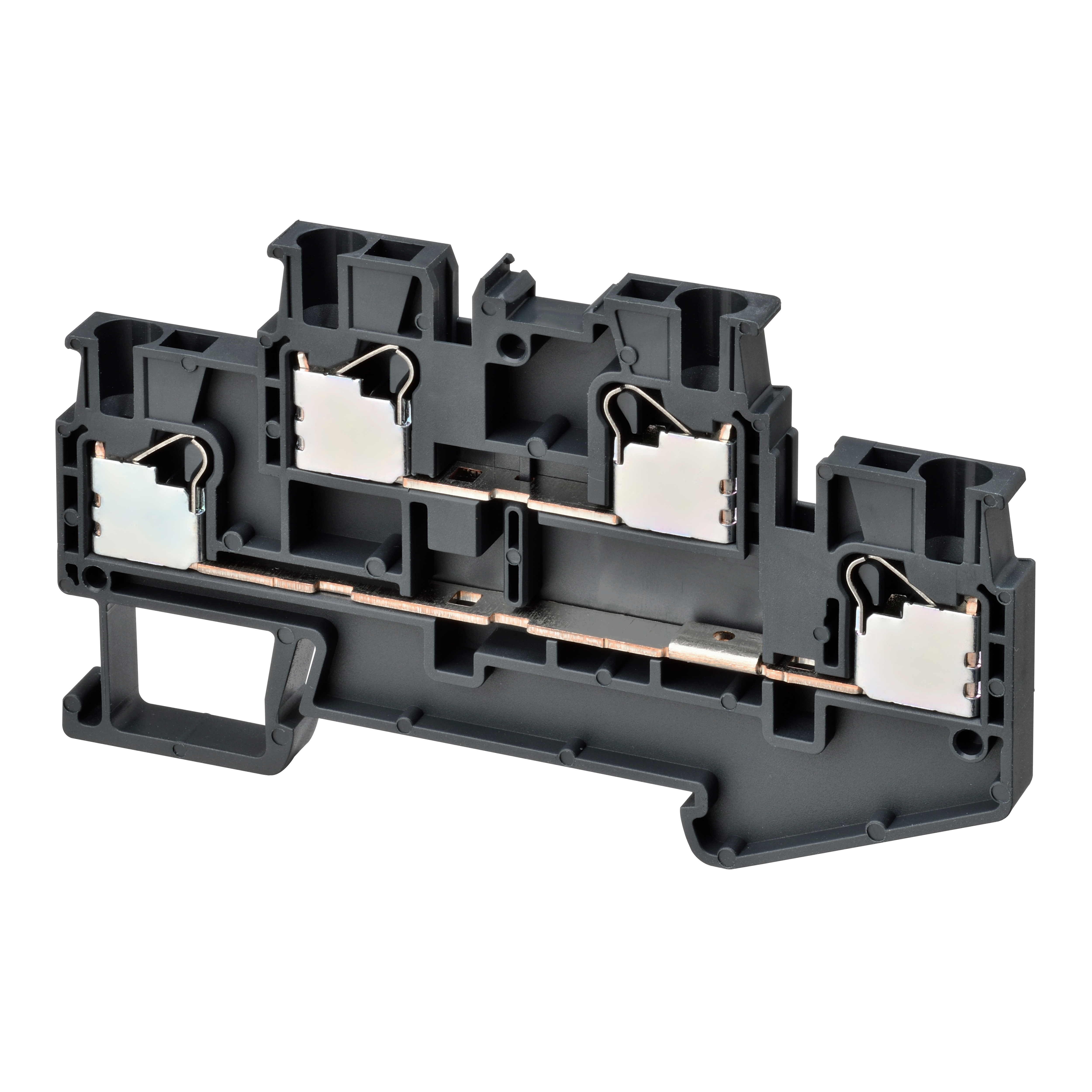 Multi-tier feed-through DIN rail terminal block with push-in plus connection for mounting on TS 35, nominal cross section 2.5 mm², color gray